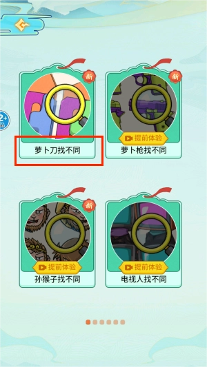 仔细观察图片,凭借你敏锐的观察力,找出其中样式与众不同的萝卜刀,顺利完成这一闯关任务。