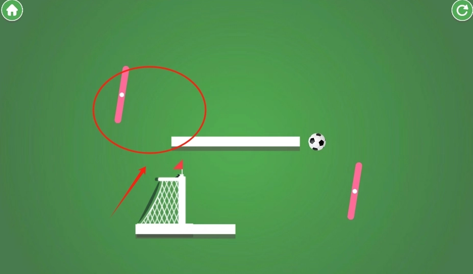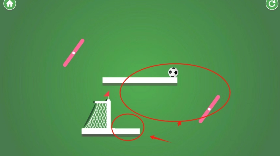 2、点击屏幕,障碍物会动,看准时机才能踢进门。