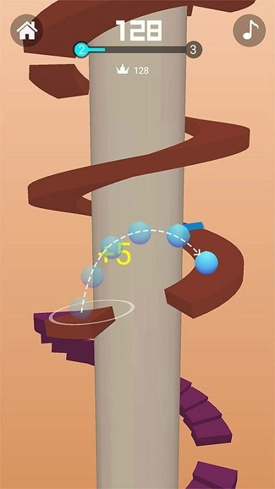 1、魔性螺旋跳跃:创新设计的螺旋塔跳跃玩法,操控小球精准落至旋转平台,带来满溢的爽快感。