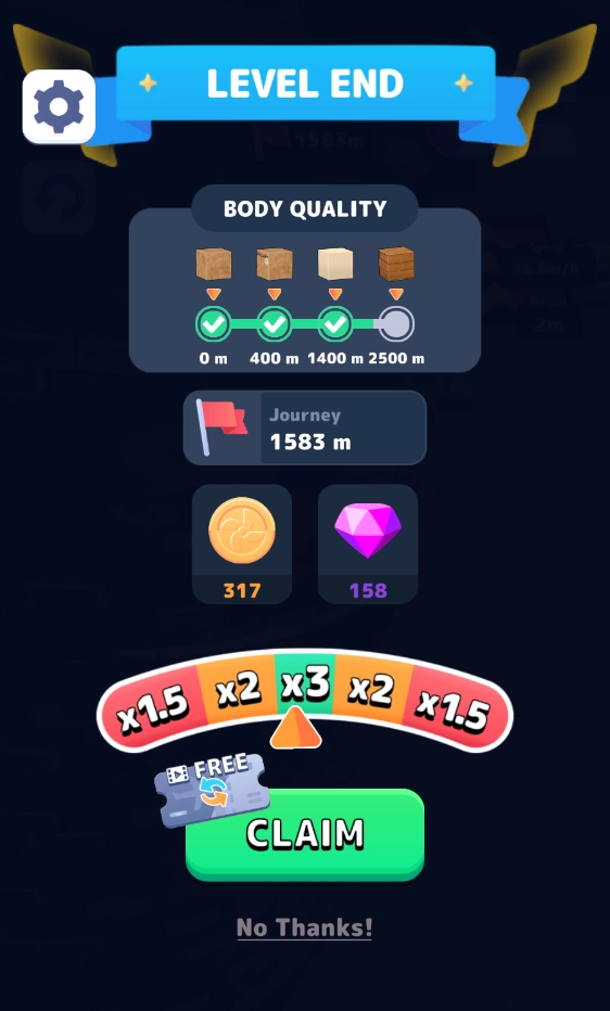 7、结束后就会根据你的飞行距离来获得奖励了。