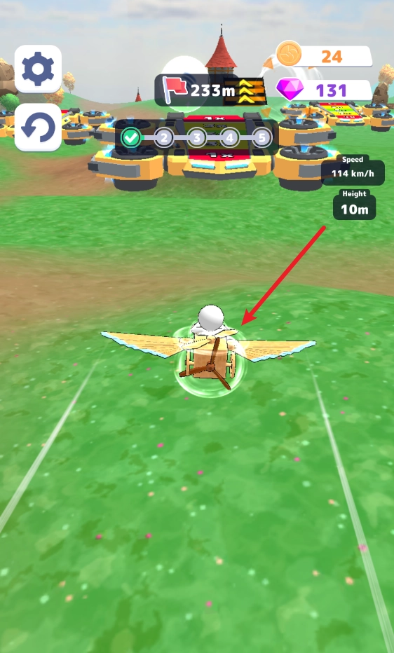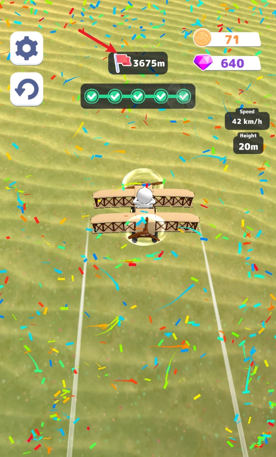 6、上方会显示你的飞行里程,当里程达到当前关卡的终点时,飞行就会结束,或者你也可能因为坠毁而提前终止飞行。