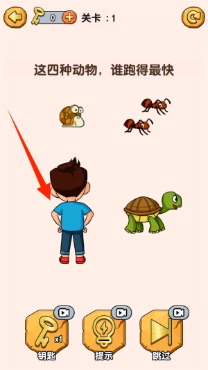 2、根据关卡提示完成指定目标,例如从四个选项中快速筛选出陆地速度最快的动物。