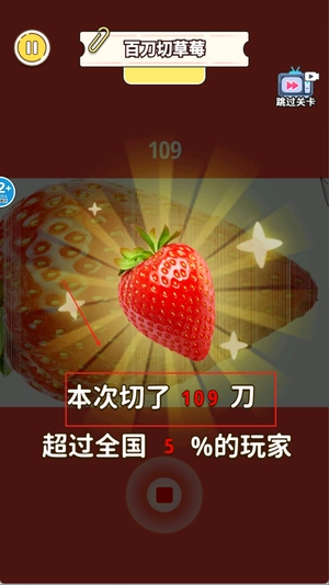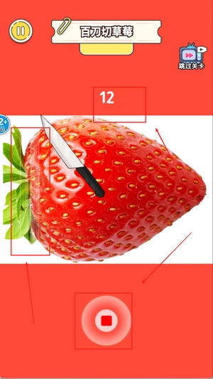 2、玩家点击下方的开始后,就可以通过点击屏幕开始切草莓了。