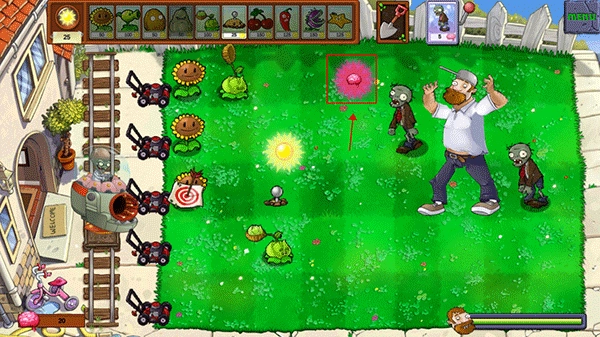 植物都离不开阳光,它们吸收阳光后会进行光合作用,这样在对抗僵尸时就能更有力量;在僵尸到来前的25秒,要赶紧在草坪的方格中种上植物。