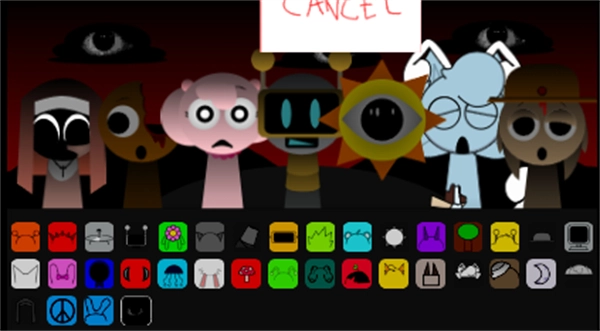 进入sprunki模组的恐怖模式后,整体变化不算太大,只是画面色调会变得暗沉,并且角色在处于空闲状态时,不再是面带微笑,而是呈现出皱眉的神情。