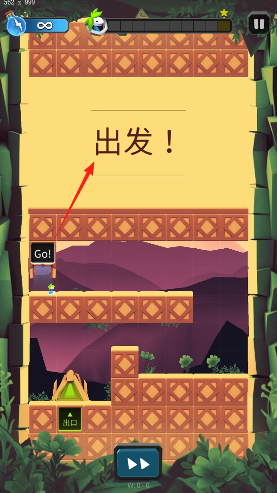 1、点击出发,操控角色前进,跨越障碍,抵达出口,完成关卡挑战。