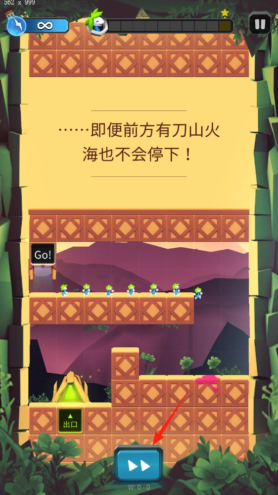 2、点击加速,让多个角色移动,避开危险,向出口推进,尝试通关。
