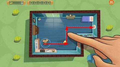 1、进入游戏第一关的教学关卡后,跟随屏幕上手指与路线的指引滑动操作,帮助小老鼠成功吃到奶酪并抵达出口。