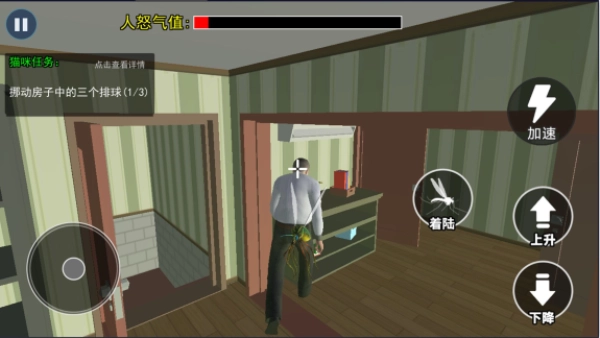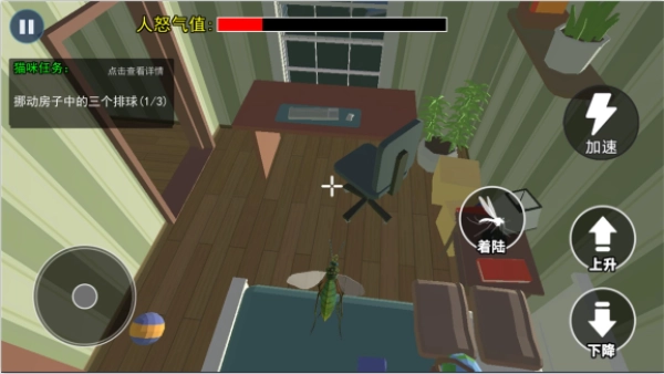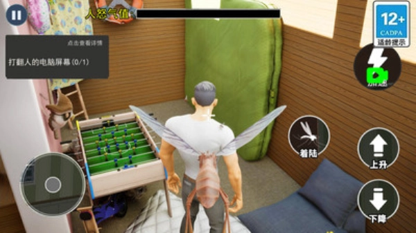 在《消灭所有蚊子》里,你能体验当蚊子的独特乐趣——化身一只古灵精怪的小蚊子,在房间里尽情“搞事情”:偷偷在主人看不见的角落搞破坏、耍恶作剧,一心想把主人惹毛,还得时刻警惕别被主人发现。游戏操作超简单,滑动屏幕按钮就能操控蚊子上升、下降或着陆,玩法新颖又好玩。