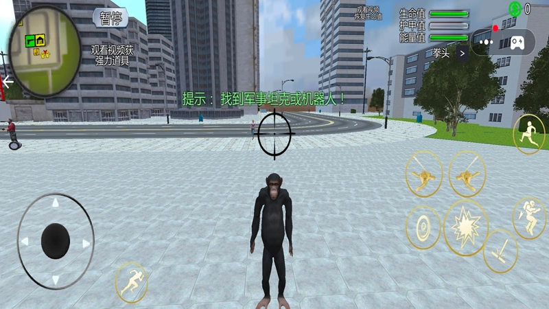 3、人类掌握着先进的科技武器,玩家得研究出有针对性的应对方法,借助和人类科技的抗衡,来展现狒狒出众的智慧。