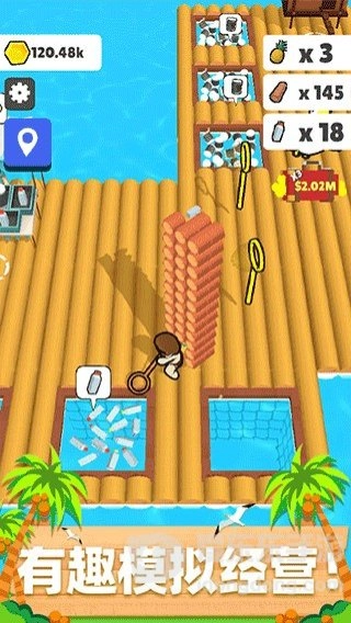 1、我们先踏上木筏,借助打捞海面的各类垃圾,像物资箱、木桶、木板、塑料、棕榈叶之类的,就能先储备一批物资。