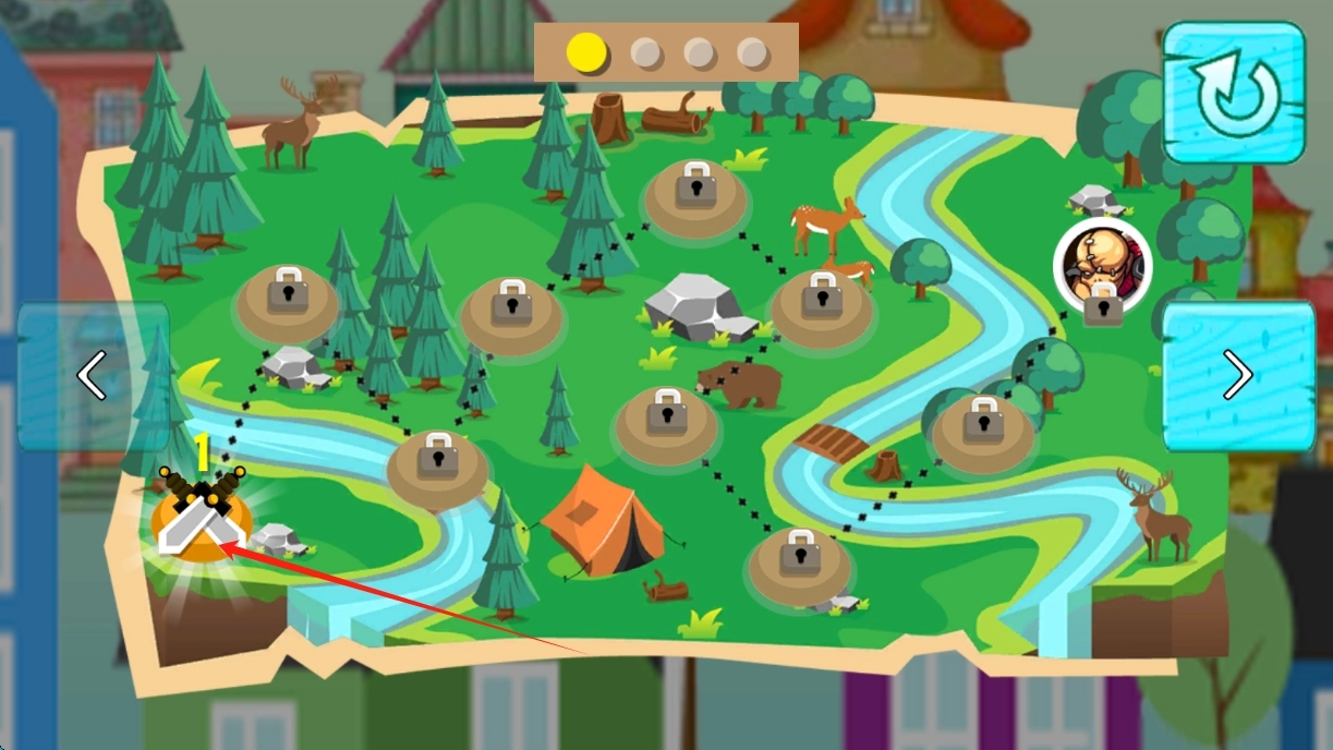 3、点击移动,收集特定组合的成就奖励解锁限定关卡,如"解锁所有技能类型""累计救援100位朋友"。