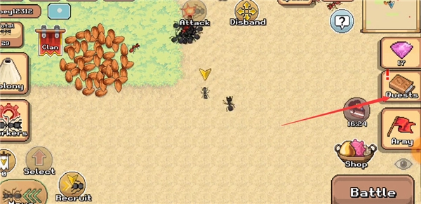 8、要指挥其他蚂蚁攻击别的动物,得点击下方的battle按钮,在这里也能查看血量情况。