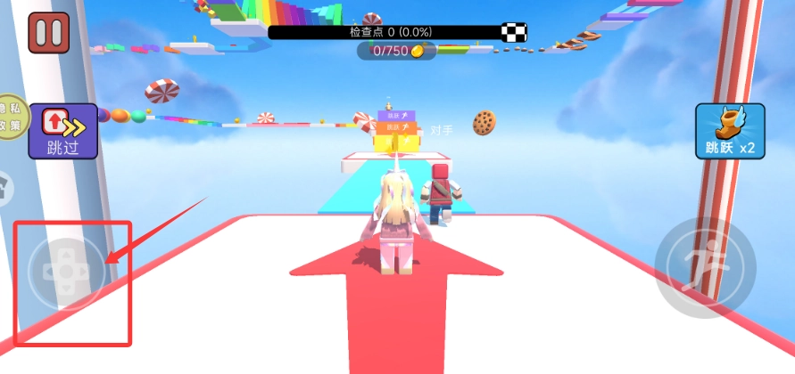 2、通过左下角摇杆移动角色,开始游玩。
