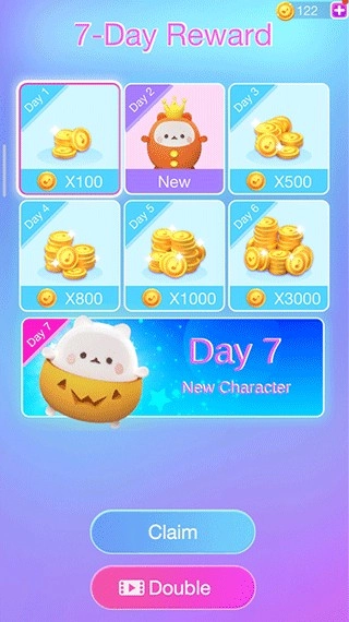 7、玩家能够参与奖励丰厚的七日签到活动,获取大量金币奖励以及精美的猫咪皮肤。