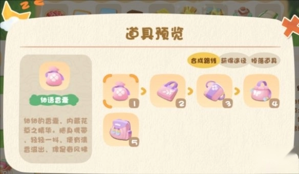 这个细雨香囊能够合成出高级道具双翼背包,而双翼背包可以用来换取不少绿叶。
