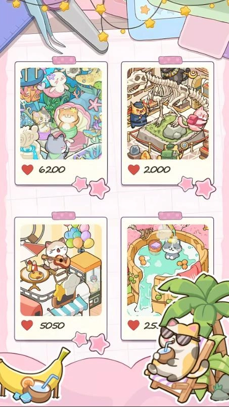 1、治愈系装饰模拟游戏,聚焦盲盒收集与贴纸玩法。