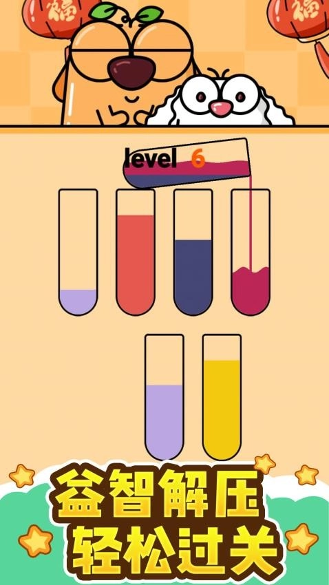 这款游戏里面运用了休闲解压的闯关设计手法来展现的,让玩家可以体验解压水排序的过程;