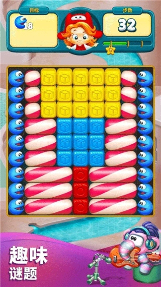 2、每一关都设有明确的目标,像达成指定分数、消除特定方块或是收集道具等,而限步或限时的机制则考验着玩家的策略规划能力与手速反应速度。