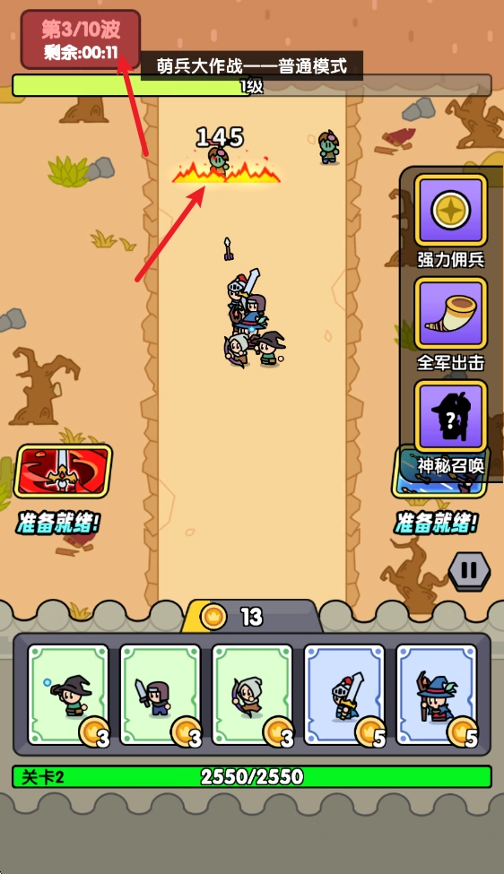 4、玩家需要在敌人突破防线前将其全部歼灭,尤其是在最终波次时,系统会进入倒计时状态。