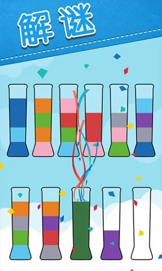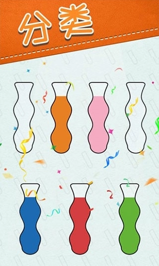 2、只有通过玩家精细的操作与耐心细致的处理,才能让彩色的水实现完美分离,并将它们分门别类地放置好。