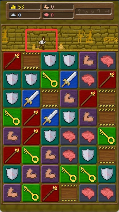 4、遇到怪物时,要想打败怪物,我们必须消除蓝色的宝剑方块。
