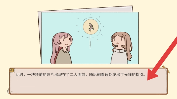 3、玩家之间的互动情节,面对项链碎片及光线指引场景,呈现漫画分镜式的游戏剧情推进场景。