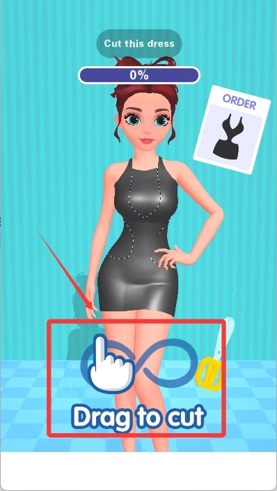 2、开始游戏后我们需要滑动屏幕操控剪刀裁剪衣服。