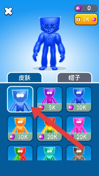 3、不同颜色的皮肤设有对应的解锁价格,例如当前选中的是蓝色皮肤,紫色皮肤需要5K宝石才能解锁,此外还有分别需要10K、20K宝石解锁的其他皮肤。
