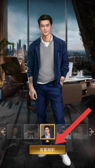 1、场景:现代办公环境,有城市景观、办公家具等元素,点击宣誓就职方可进入,主要是角色入职相关操作界面。