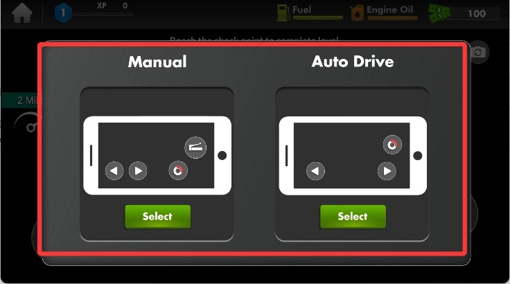 进入关卡后,先挑选你喜欢的车型,接着选择适合的驾驶模式,按下加速键快速启动,通过左右滑动来调整行驶方向,只要驶过终点就能完成关卡。