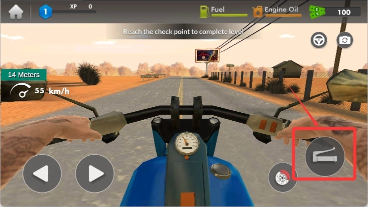4、开始游戏后,如果是手动模式点击右侧油门即可使摩托车前进。