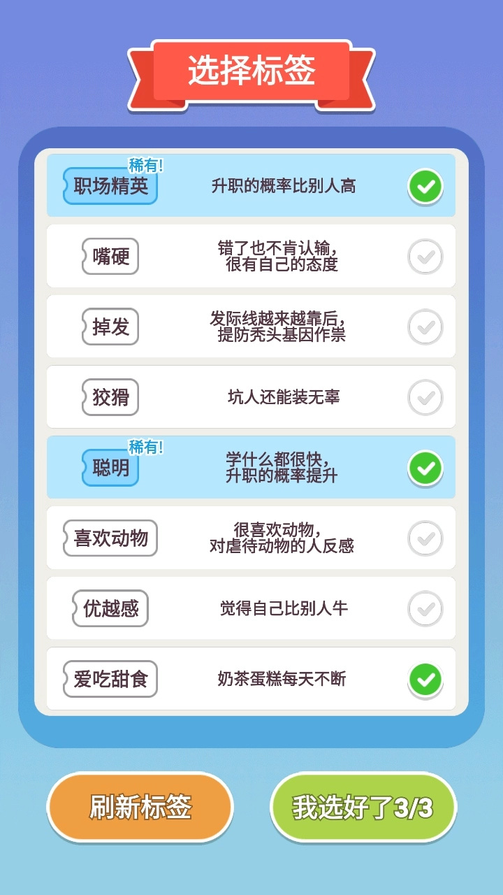 2、游戏里的每一个抉择都可能引发不同的走向,进而对角色的幸福感、财富积累以及社会地位产生影响。