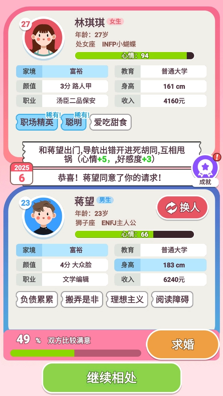 6.不断地点击继续相处可以触发各种剧情。