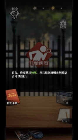 4、依照校规手册判断学生身份,决定放行与否。