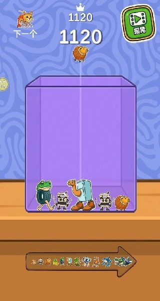 1、进入游戏后,你只需要点击,就会掉落不同形态的怪兽,砸到相同的就能消除。
