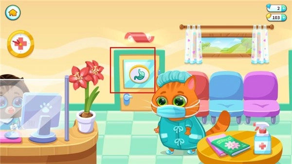 1、bubu当bubu生病时,会持续出现肚子疼的标识,点击该标识就能前往诊所。