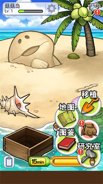 5、进入游戏界面后,玩家会看到如图所示的场景。这款游戏采用的是修复挂机的玩法,玩家只需点击菇菇,就能帮助它快速成长。