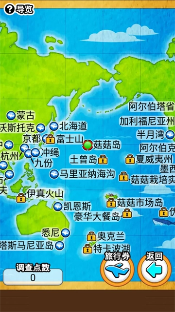 收集到菇菇后就可以开展菇菇调查啦!随着调查进度的推进,还能解锁新的调查地点呢!像澳大利亚的珊瑚礁、美国广袤的山脉等地,让我们一起前往这些有着不同环境与文化的地方进行调查吧!