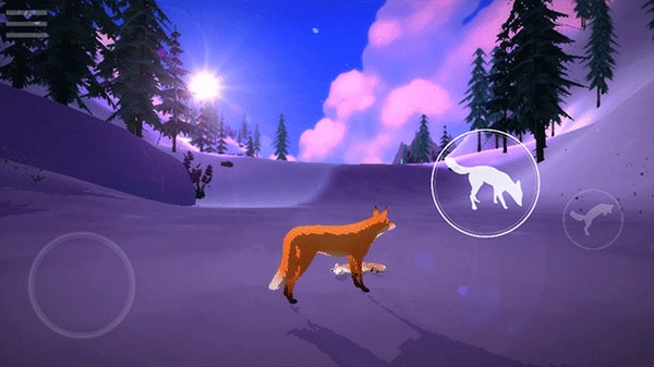 3、进入游戏后,狐狸在雪地中苏醒,触发剧情对话,操控狐狸向前移动;