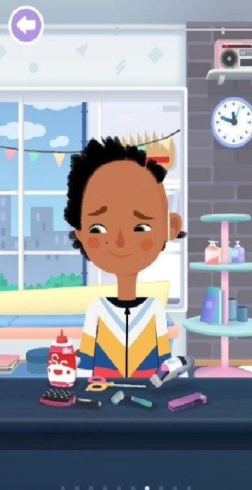 2、选用卡通梦幻的风格,角色造型可爱鲜活,场景色调明亮轻快,再配上轻松愉悦的背景音乐,打造出温馨又时尚的美发氛围。