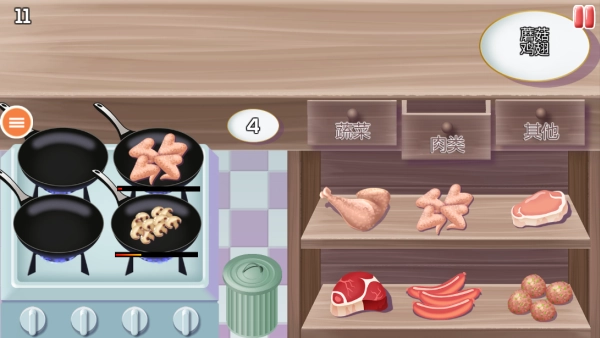 2.操作反馈:以实时方式呈现食材烹饪的进度条和顾客状态提示,助力玩家迅速判断任务优先级,提升决策效率。