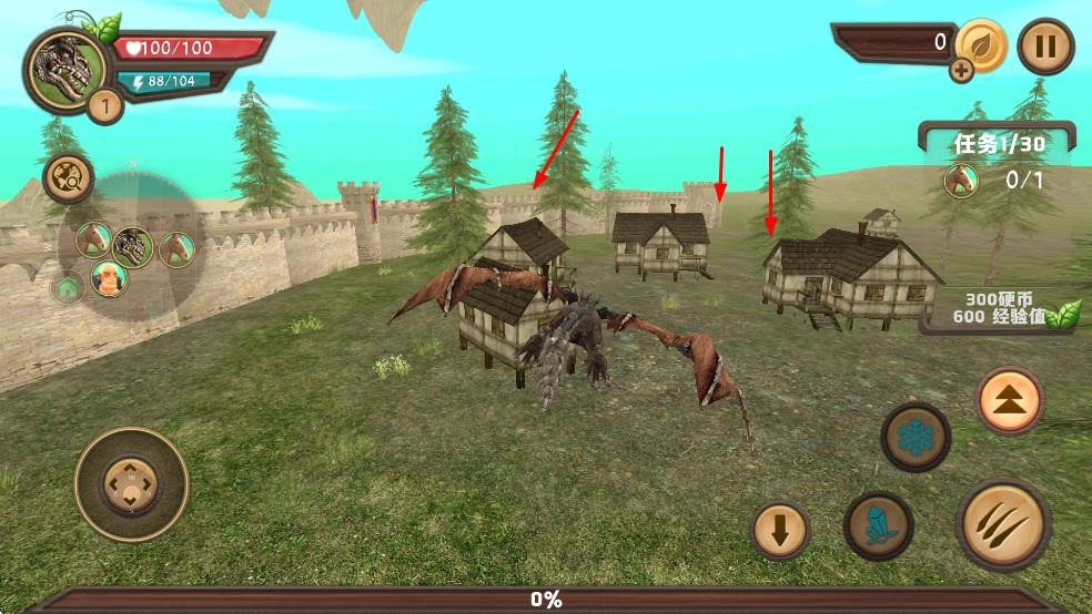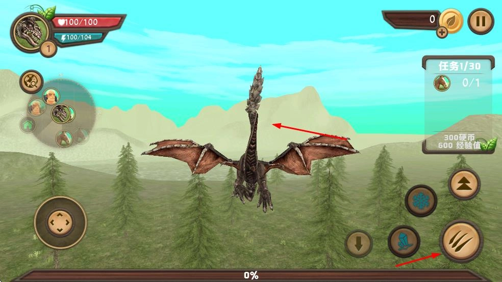 1、操控左侧摇杆移动龙身,切换技能栏选择攻击手段,如爪击技能,开启冒险战斗。