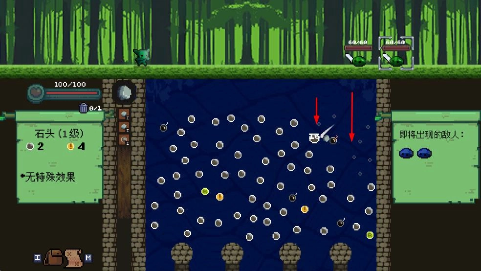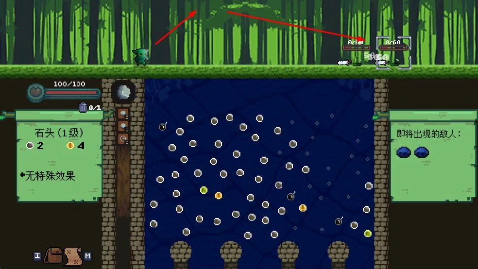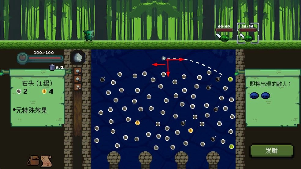 1、选武器如石头1级,调发射角度瞄准敌人区,点发射让弹珠弹跳攻击。