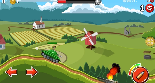 1、进入游戏,你会看到一个士兵驾驶着坦克,正在和敌人激烈作战。