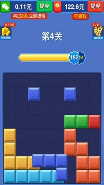 拼个方块赚钱游戏是一款经典的方块类游戏。它的玩法参考了俄罗斯方块,并在此基础上做了简化,让玩家玩起来更有意思。游戏里玩家只需把方块放到合适的位置,当方块放满一行或一列时就能消除,消除所有方块即可过关,感兴趣的朋友赶紧来试试吧。