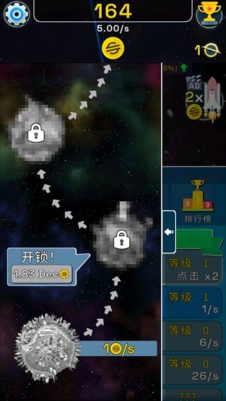 2、第一栏是升级区域,玩家可在此用金币让星球进化,每次升级都会推动星球成长,不同进化阶段所需金币各不相同,且进化等级越高,消耗的金币数量就越多。