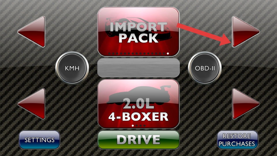 1、车辆配置选择使用,进入配置界面后,点击IMPORT PACK就可以查看并解锁进口的系列车型。