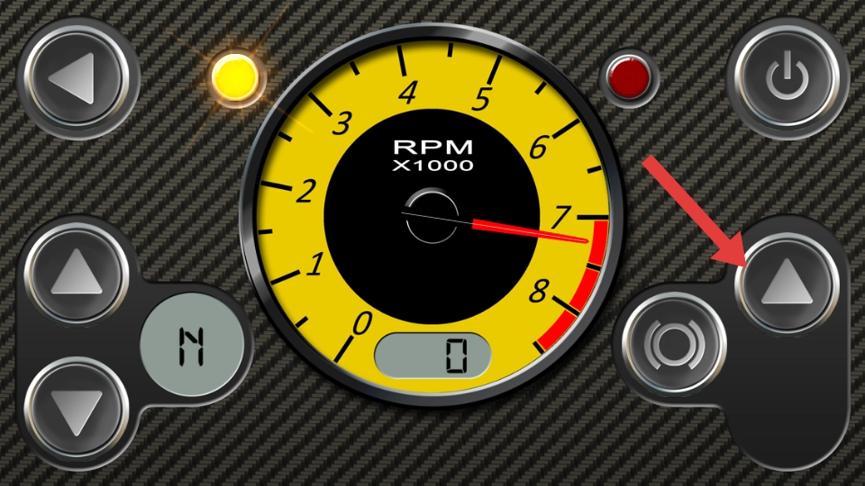 2、引擎启动与档位操作:在界面右上角找到引擎开关,轻触开关完成点火启动;启动后滑动右下方区域,根据需求灵活切换档位,从低档位到高档位。