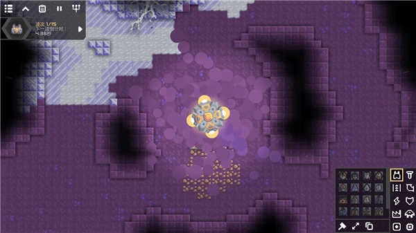 到达目标地点后,完全不用急着考虑生产的事,先绕着地图转一圈,把所有的刷怪点都找出来。接着判断一下,是把刷怪点堵起来更简单,还是把自己的基地入口堵上更容易,选其中一个方案来堵;要是有好几条通路的话,那就把这些路都堵上,然后挑一条路来建造防御塔,这里要特别注意!这条路的墙一定要是最!薄!的(这样能防止怪物往其他路跑)。